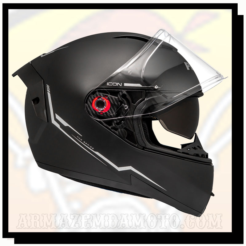 direcionamento de ar contribui para que a viseira não embaçe. As viseiras do Icon contam com sistema